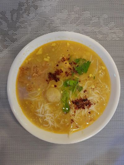Footnote #4 : Mohinga: Mohinga is a rice noodle and fish soup from Myanmar and an essential part of Burmese cuisine, considered by many to be the national dish of Myanmar. Mohinga is readily available in most parts of the country, sold by street hawkers and roadside stalls in larger cities. Mohinga is traditionally eaten for breakfast, but today is eaten at any time of day.