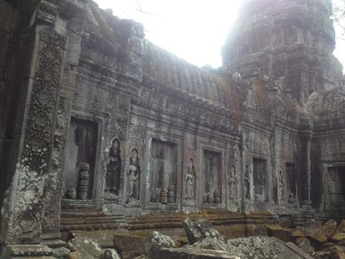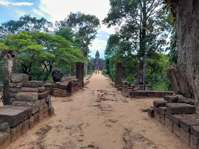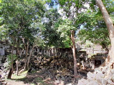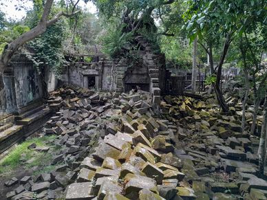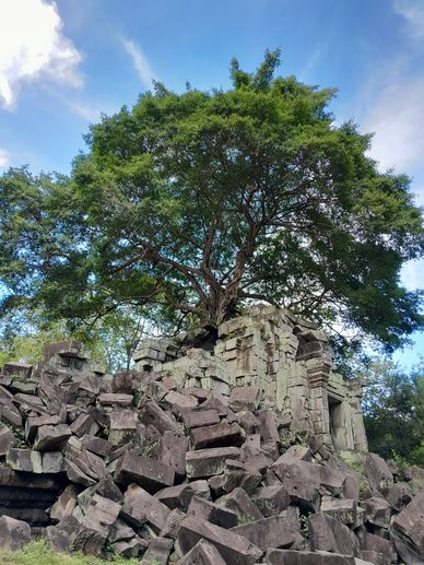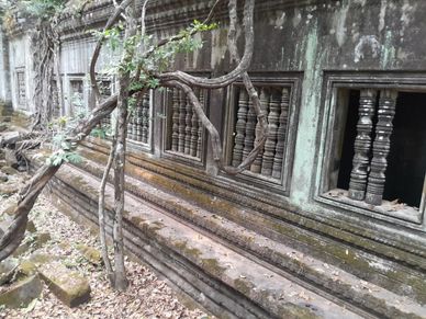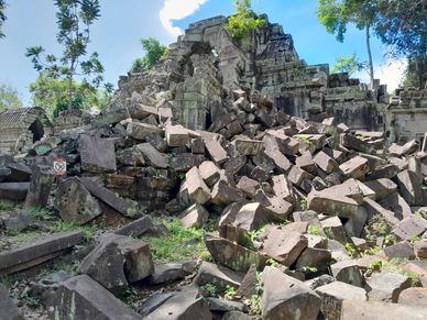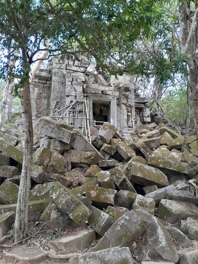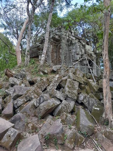 Boeng Mealea, is a temple from the Angkor Wat period located 40 km (25 mi) east of the main group of temples at Angkor, Cambodia, on the ancient royal highway to Preah Khan Kompong Svay.