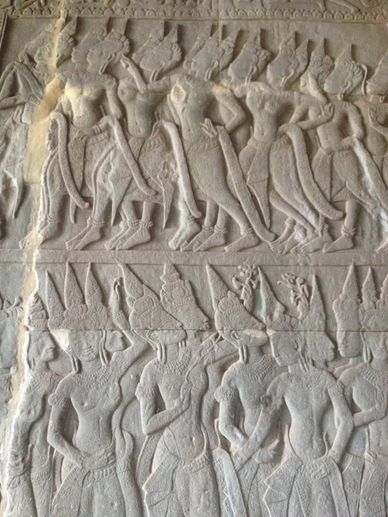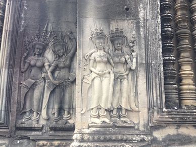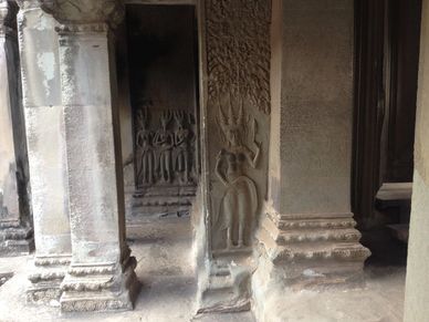 The temple's modern name, Banteay Srei—citadel of the women, or citadel of beauty—is probably related to the intricacy of the bas relief carvings found on the walls and the tiny dimensions of the buildings themselves.