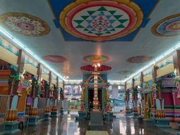 The Arulmigu Karumariamman Temple of Seberang Jaya is a South Indian Hindu temple noted for having the largest rajagopuram, or main sculpture tower, in Malaysia. It stands at a height of 72 feet. The entrance of the rajagopuram, at 21 ft tall and 11 ft wide, is also the biggest in Malaysia. There is a Gurudwara , Church, Thai Temple, Mosque Buddhist temple, Chinese temple are all nearby on the same street