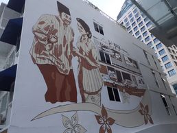 Street Art by Lithuanian artist Ernest Zacharevic in Kuching, Sarawak.
