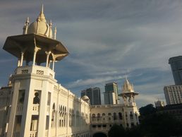 Jamek Mosque at the confluence of Gombak (left) and Klang (right) rivers. The earliest settlement of Kuala Lumpur developed on the eastern side of the river bank
